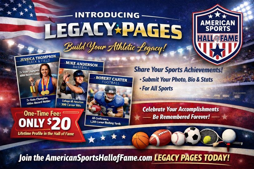 Every athlete has a story worth preserving. Now, the American Sports Hall of Fame proudly introduces Legacy Pages — a special section of our website where athletes from every sport can permanently showcase their careers, achievements, and statistics.